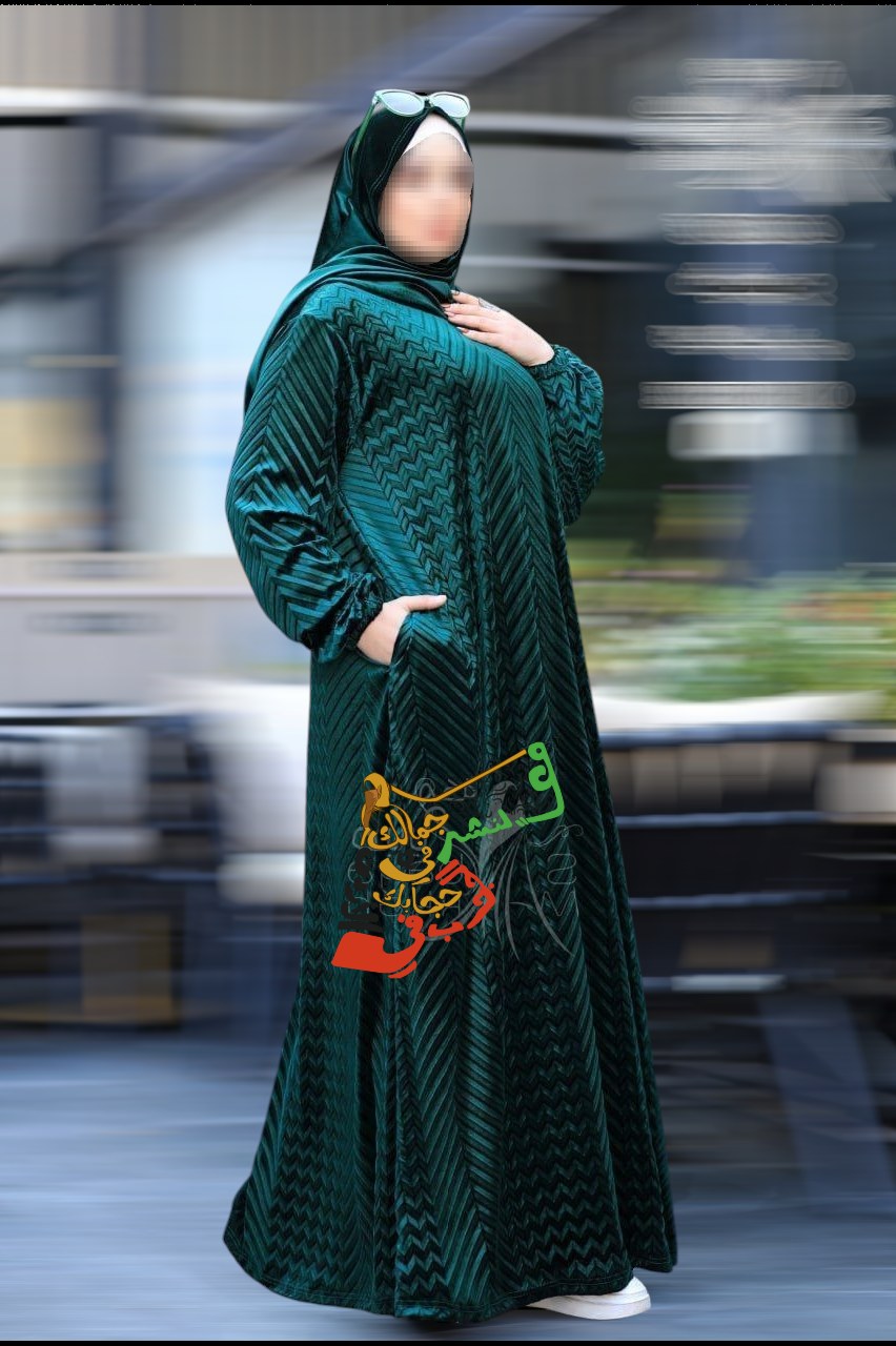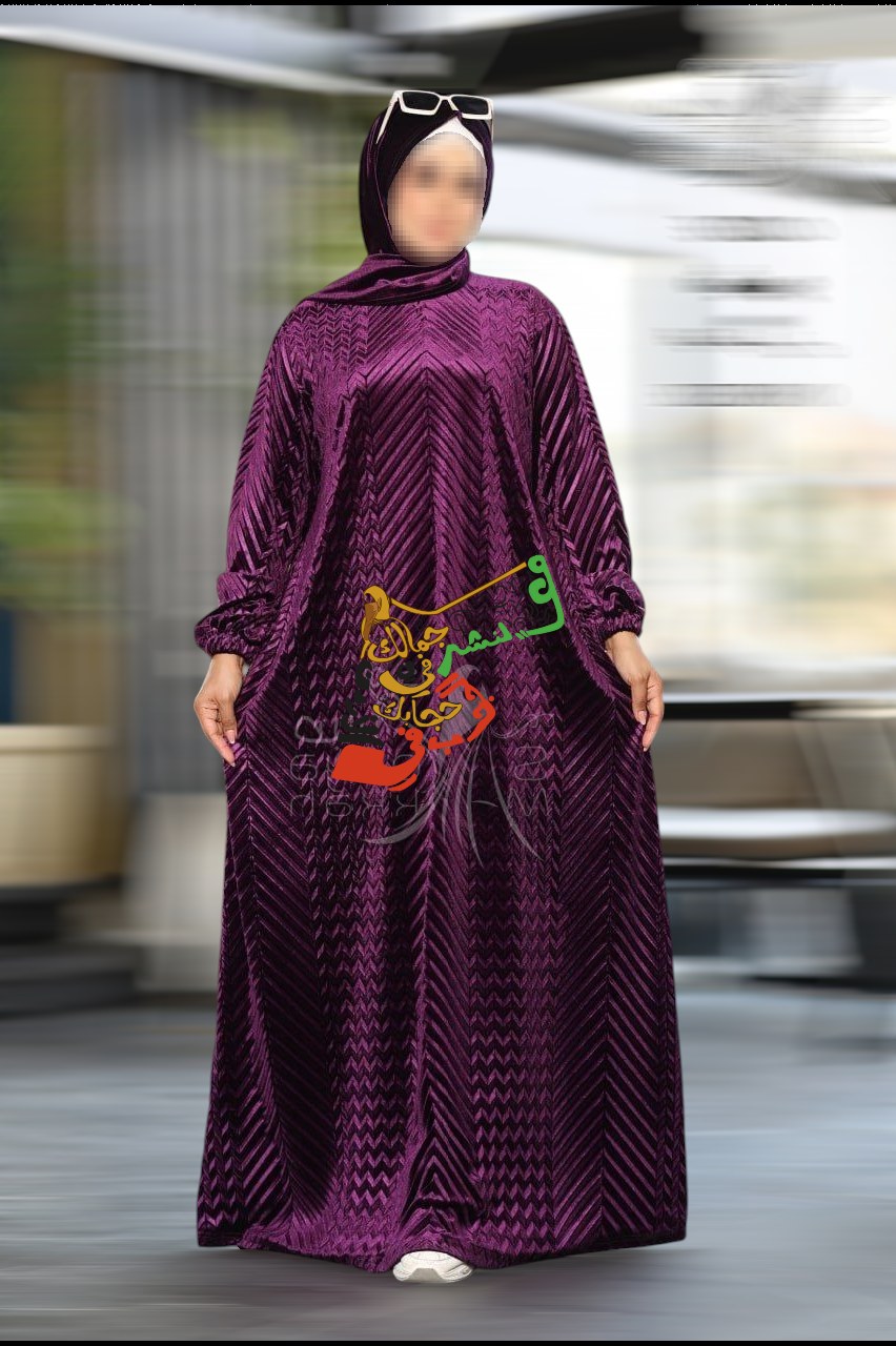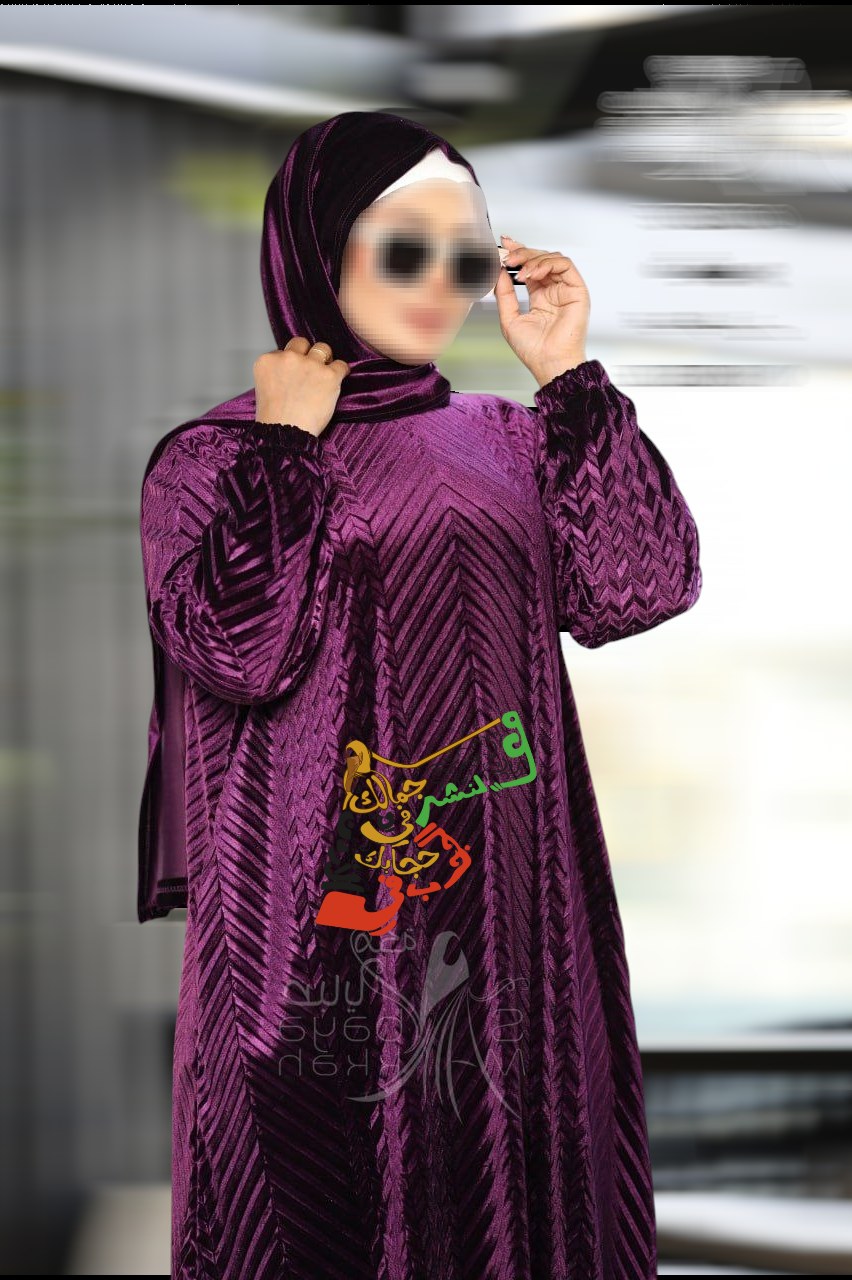 🤩 القماشة مخمل ناااااعم زي الحرير شتوية دافية ومريييح جدا وراقي وأنيق وبيلبس كل الأحجام والأطوال... مناسب جدا للاستقبالات واعمال البيت من جلي ومسح وغسيل وكله 🙃...