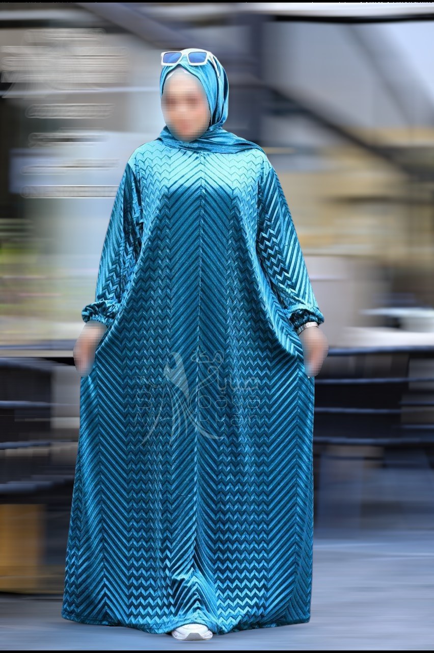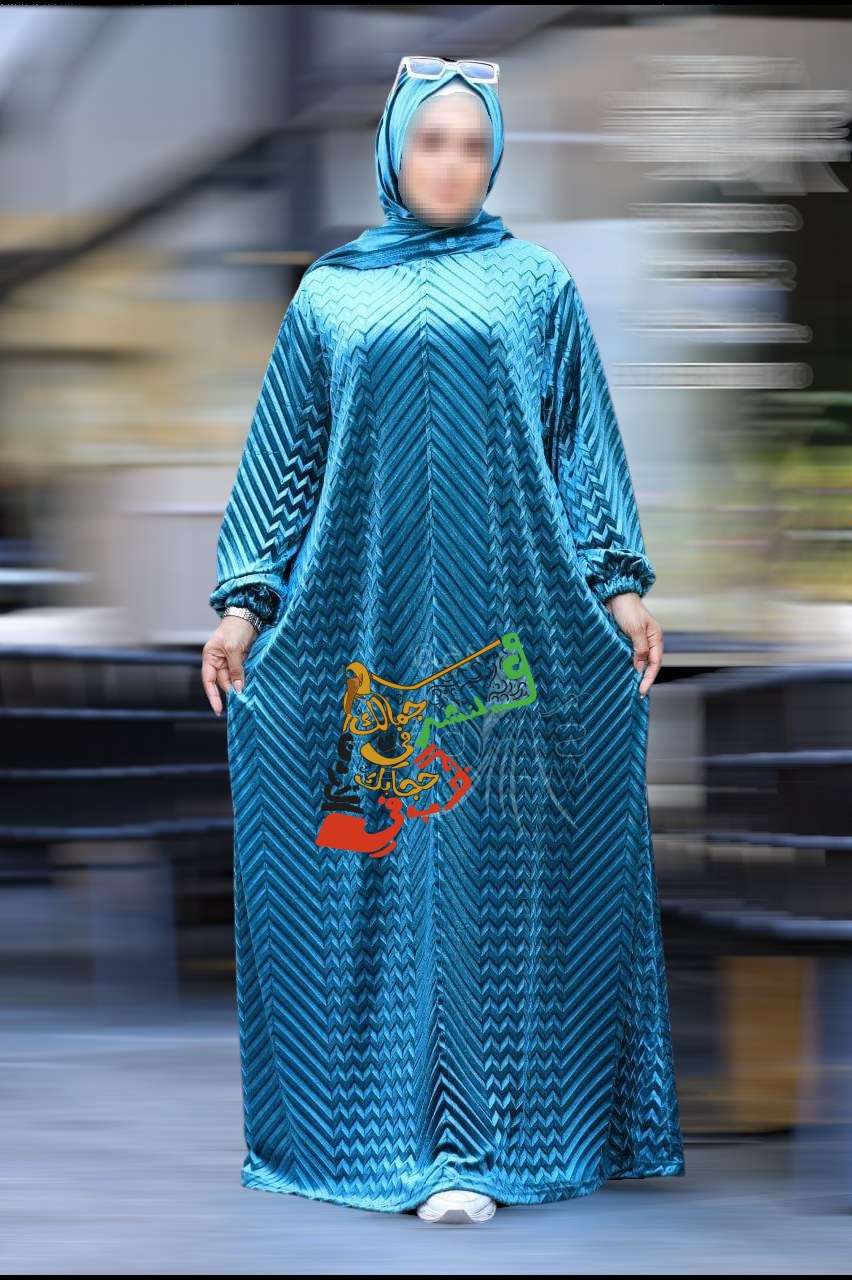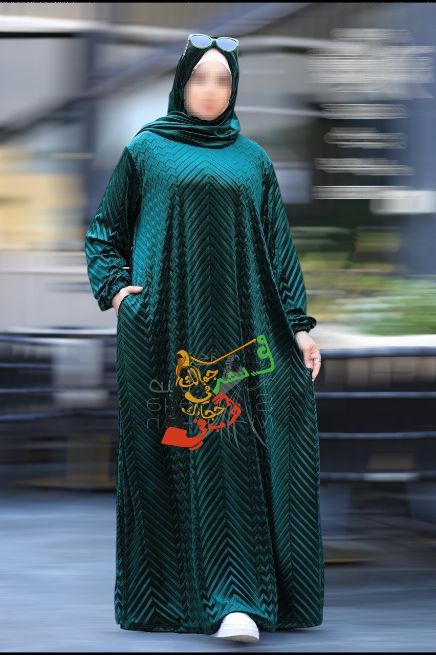 🤩 القماشة مخمل ناااااعم زي الحرير شتوية دافية ومريييح جدا وراقي وأنيق وبيلبس كل الأحجام والأطوال... مناسب جدا للاستقبالات واعمال البيت من جلي ومسح وغسيل وكله 🙃...